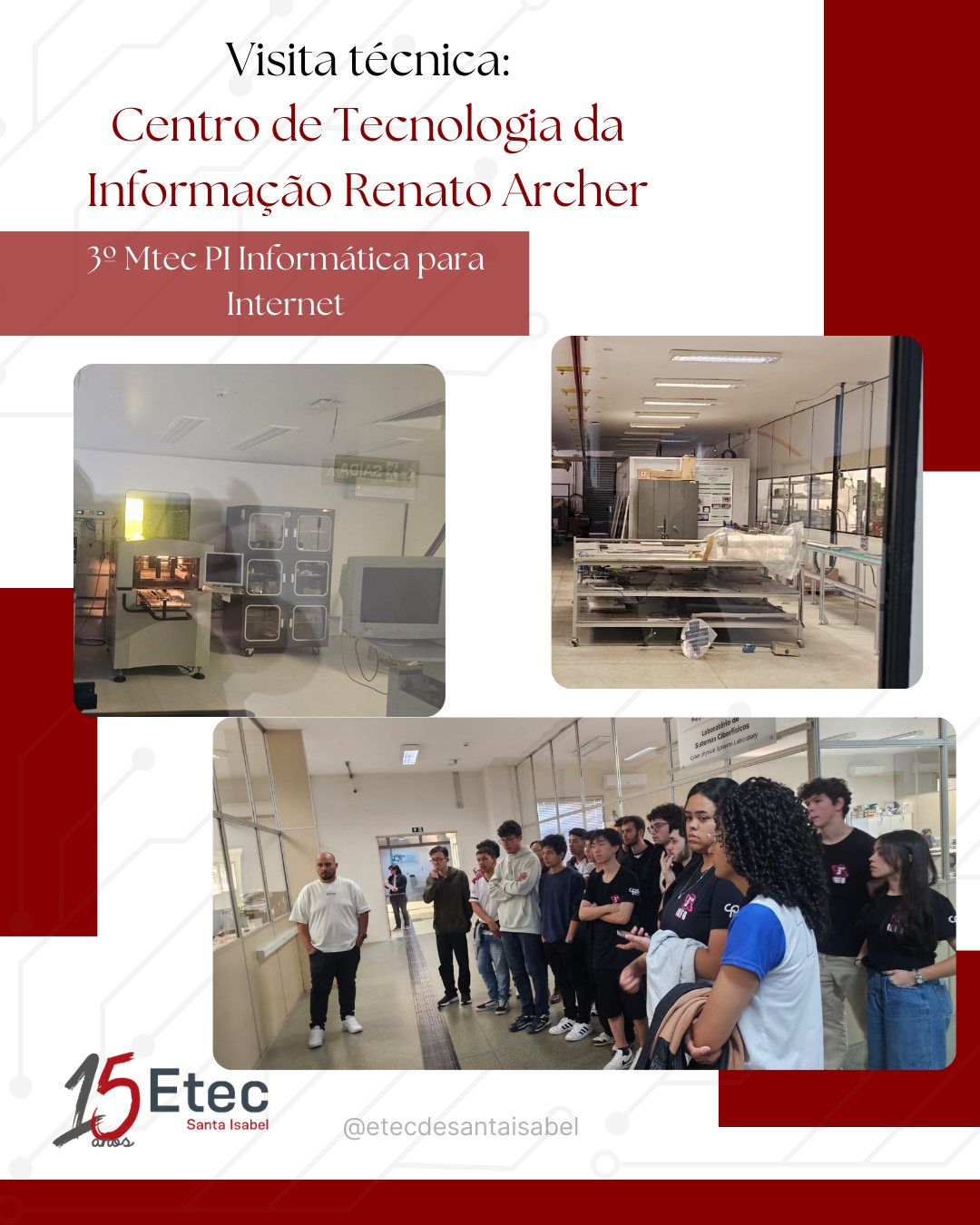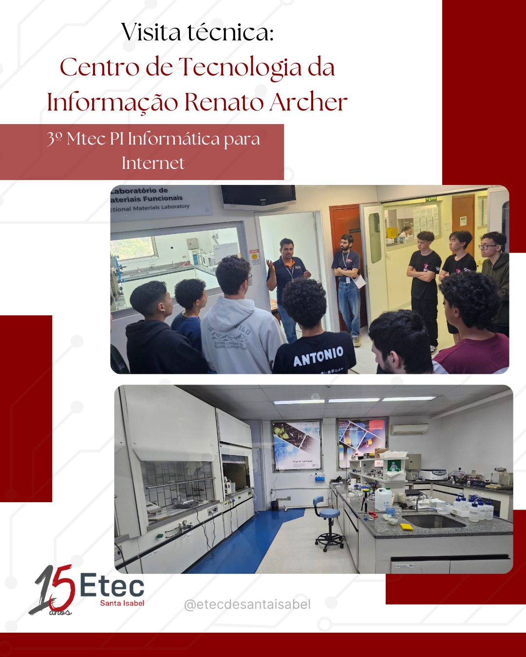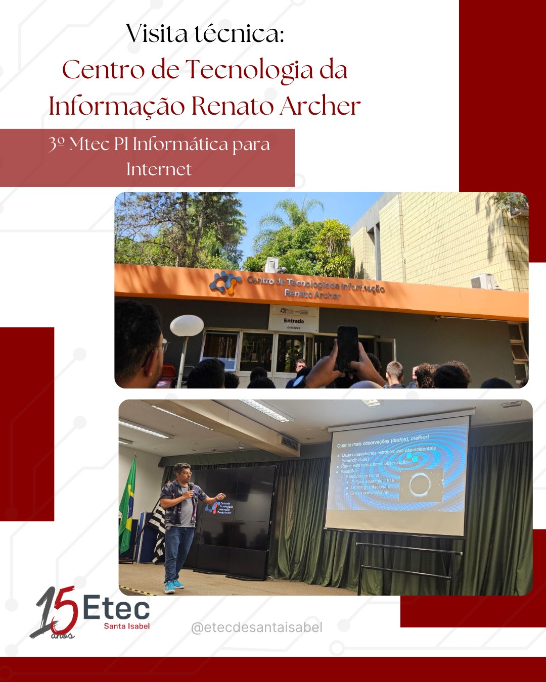 No dia 15 de setembro de 2025, os alunos do 3º MTEC PI Informática para Internet da Etec de Santa Isabel viveram uma experiência única ao visitar o Centro de Tecnologia e Informação Renato Archer (CTI), localizado em Campinas.