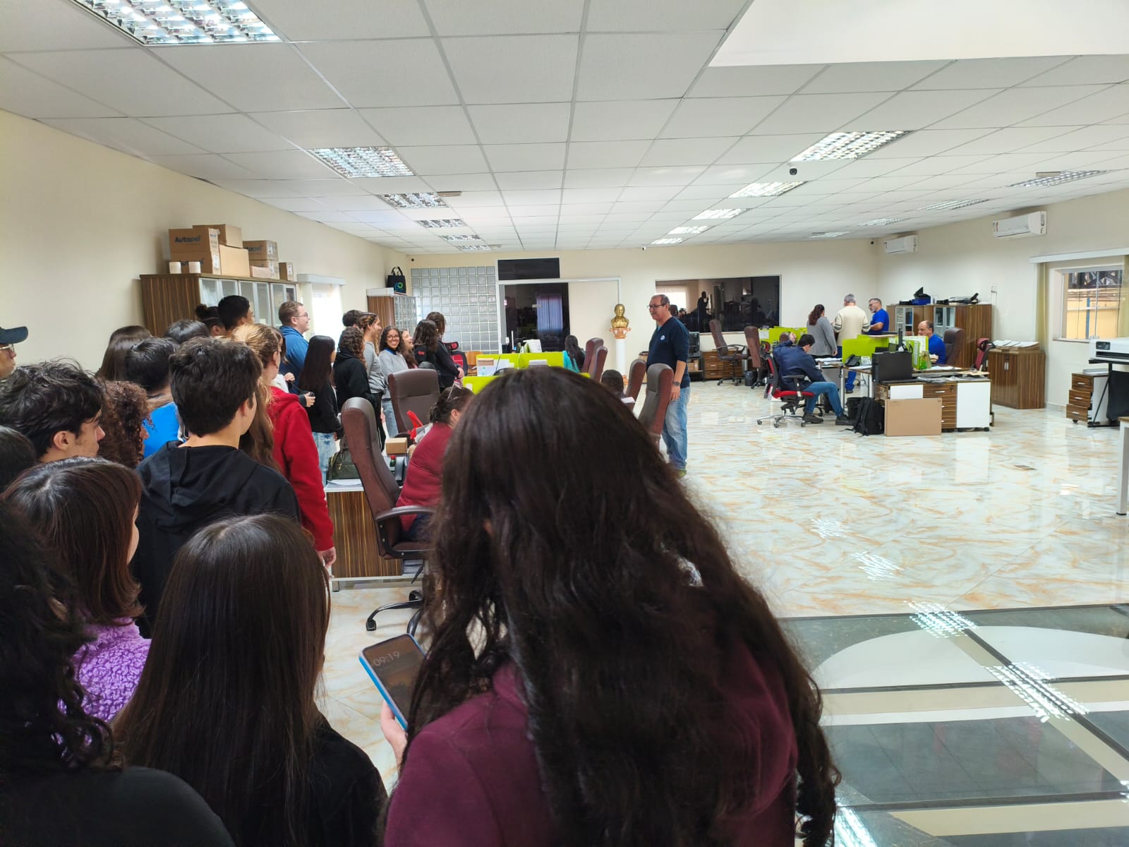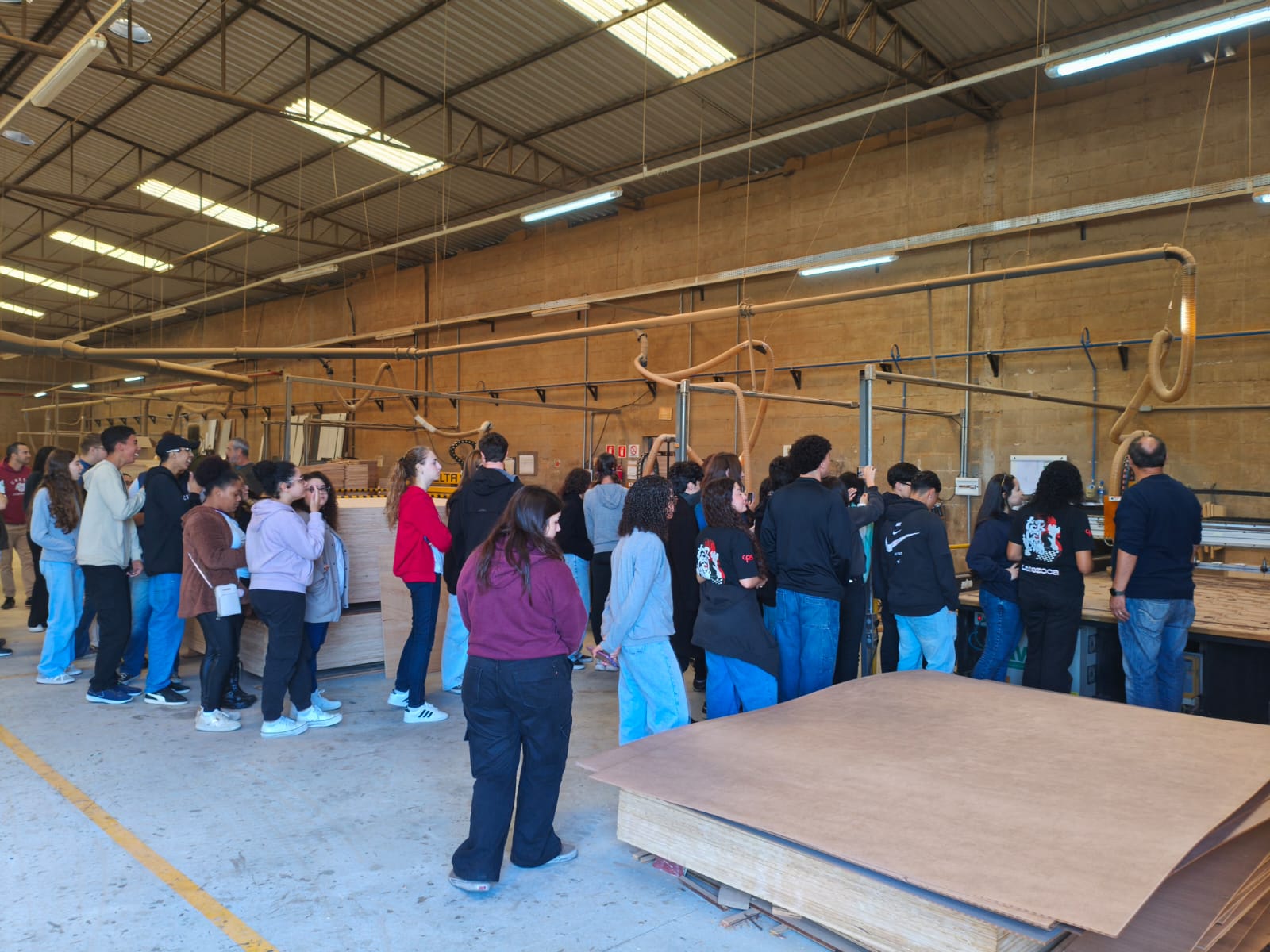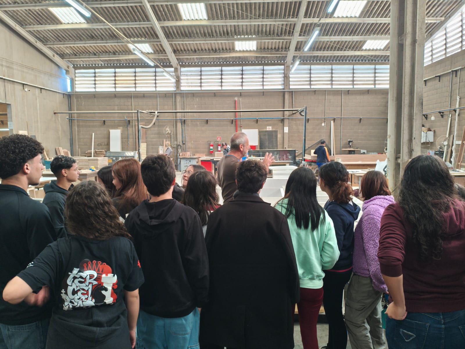 Na sequência, a turma conheceu o setor de móveis planejados, onde se destacou o enfoque na personalização e na versatilidade. A equipe da empresa explicou como os projetos são desenvolvidos por meio de softwares de design e executados com precisão técnica, demonstrando o equilíbrio entre tecnologia de ponta e mão de obra qualificada na produção de móveis que aliam funcionalidade e estética.