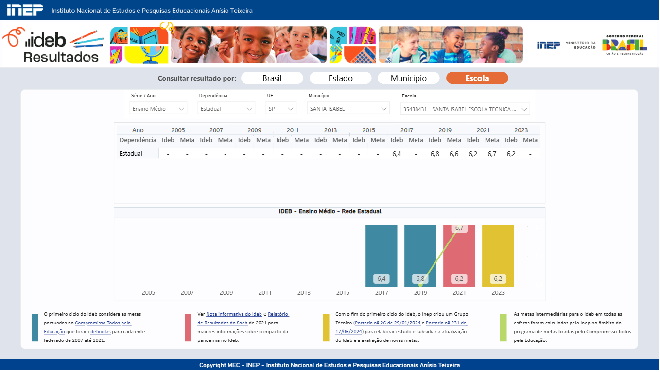 Instituto Nacional de Estudos e Pesquisas Educacionais Anísio Teixeira | Inep : https://www.gov.br/inep/pt-br/areas-de-atuacao/pesquisas-estatisticas-e-indicadores/ideb/resultados